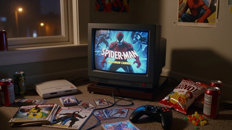 - Spider-Man/Venom: Maximum Carnage (1994) : ce chef-d’œuvre sanglant sur SNES/Mega Drive, avec une bande-son signée Red Hot Chili Peppers et un gameplay aussi fluide qu’un chewing-gum collé sous une table de cantine.