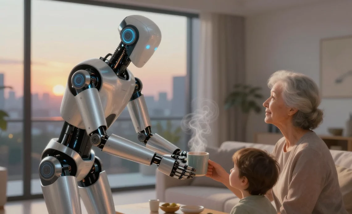 Et puis il y a la maison. Le fantasme ultime, évidemment. Pas forcément le robot majordome parfait, mais une présence capable de prendre en charge une partie du quotidien. Ranger, nettoyer, préparer, surveiller. Pas tout, pas parfaitement, mais suffisamment pour changer la charge mentale.
